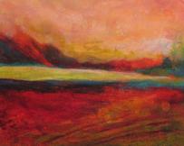 When I paint, my objective is to catch that place between color field painting and landscape painting. I paint using thin layers of transparent acrylic paint and enjoy using non-traditional painting tools. The marks from those tools reveal the landscape over time.